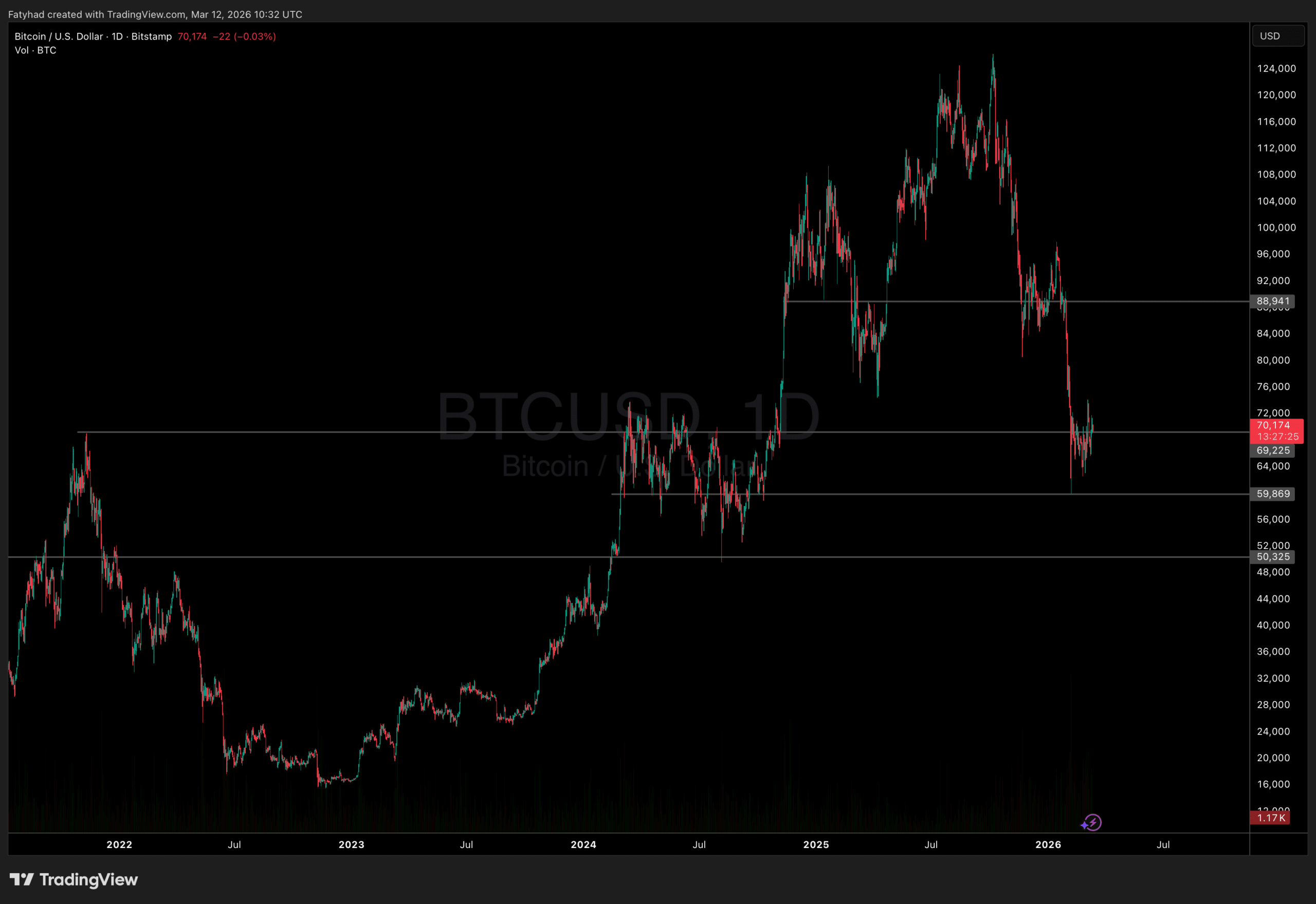 For now, the $69,000 support appears to be holding. But three rejections at $71,600 demand respect.
