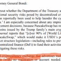 - Warren’s letter asks if DOJ and Treasury are investigating “significant national security risks” from decentralized exchanges like PancakeSwap and demands answers by Jan. 12.